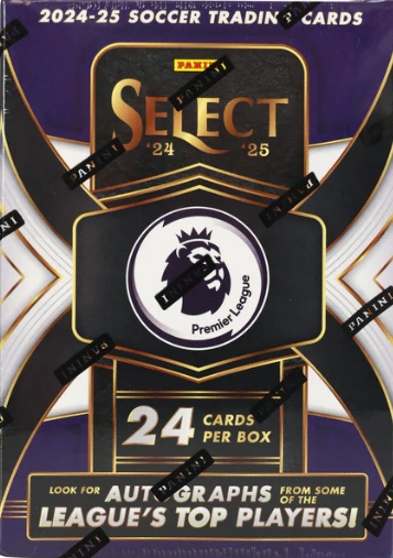 Każde pudełko zawiera średnio jedną różową kartę Base Pink Mojo, trzy fioletowe karty Base Purple i trzy wkładki lub wkładki równoległe! Popularna marka Select powraca do piłki nożnej w sezonie 2024-25 z premierą Premier League zawierającą wszystkie 20 drużyn! Zbierz 250-kartowy, trójpoziomowy zestaw podstawowy (Terrace, Mezzanine, Field Level) z mnóstwem kart równoległych do każdej z nich, w tym nieuchwytną szachownicę Checkerboard. Szukaj zestawów wkładek, w tym Equalizers, Select Future, Unstoppable i nowych Snapshots. Szukaj 4 zestawów autografów z niesamowitą listą sygnatariuszy. W tym roku wśród sygnatariuszy znaleźli się Cole Palmer, Kobbie Mainoo, Savinho i wielu innych. DODATK DOTYCZĄCY RÓWNOLEGŁOŚCI: SELECT FUTURE PREMIER LEAGUE -Blue Pulsar